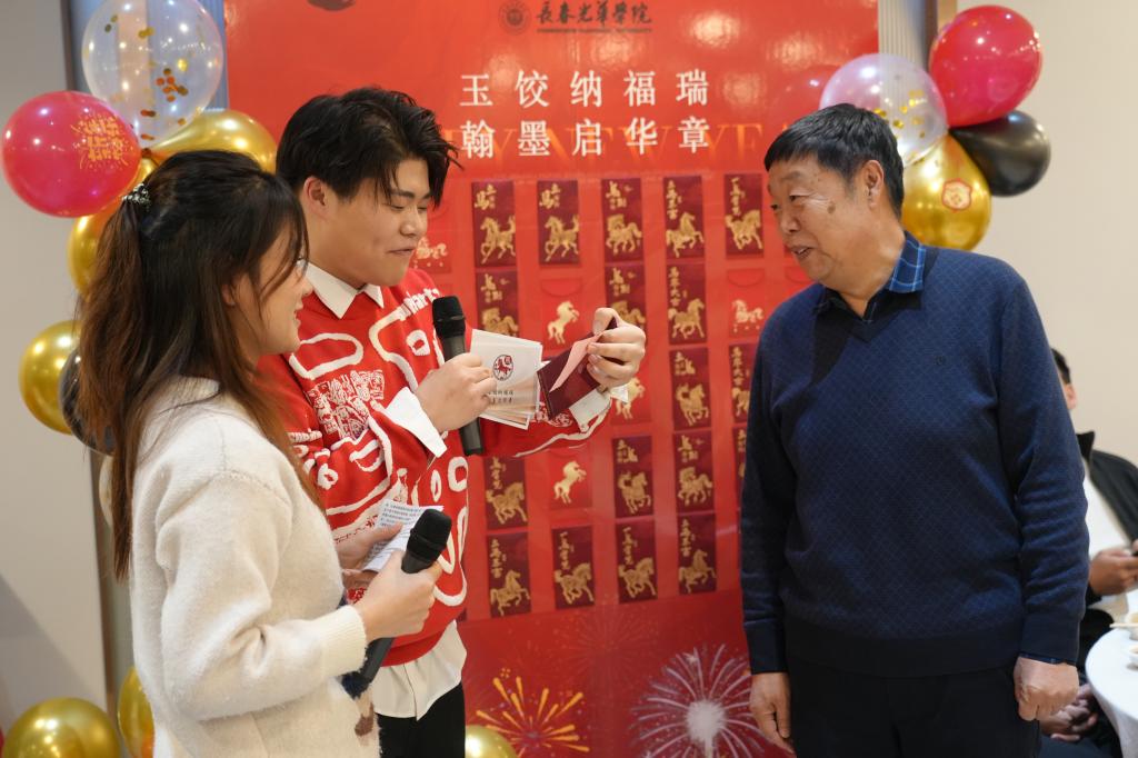 夜幕降临,热气腾腾的饺子陆续上桌,现场暖意更浓。来自维吾尔族、蒙古族、朝鲜族、东乡族、锡伯族等多个民族的学生代表轮番登场,分享家乡的新年习俗与特色美食,更有蒙古族的学生为在场老师们献上寄托着最美好祝愿的哈达,师生们围坐一桌,共品多元风味饺子与各民族特色佳肴,深切感受多民族交融共处的深厚情谊。活动尾声,现场颁发了 “创意饺子”“协作能手” 等特色奖项,幸运抽奖环节更是将氛围推向高潮,欢声笑语中,本次迎新年活动画上圆满句号。