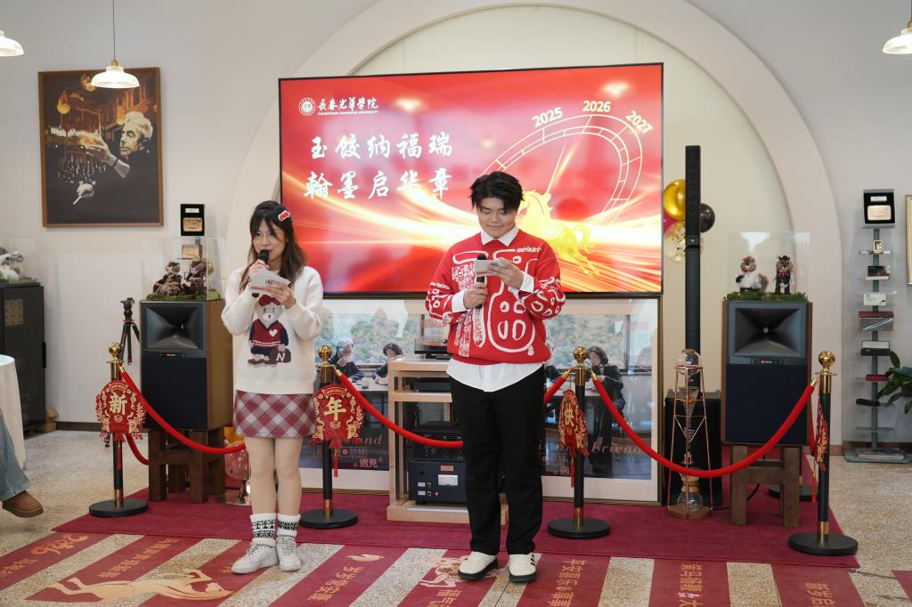 活动在温馨祥和的氛围中拉开序幕。多位影视明星和在校学子通过视频,为学校发展与沐味咖啡送上诚挚祝福;现代教育学院学子奏响悠扬笛声《春节序曲》,婉转旋律勾勒出新年的美好;维吾尔族同学献上翩跹民族舞,灵动舞步尽显多元文化的绚丽风采,瞬间点燃现场氛围。