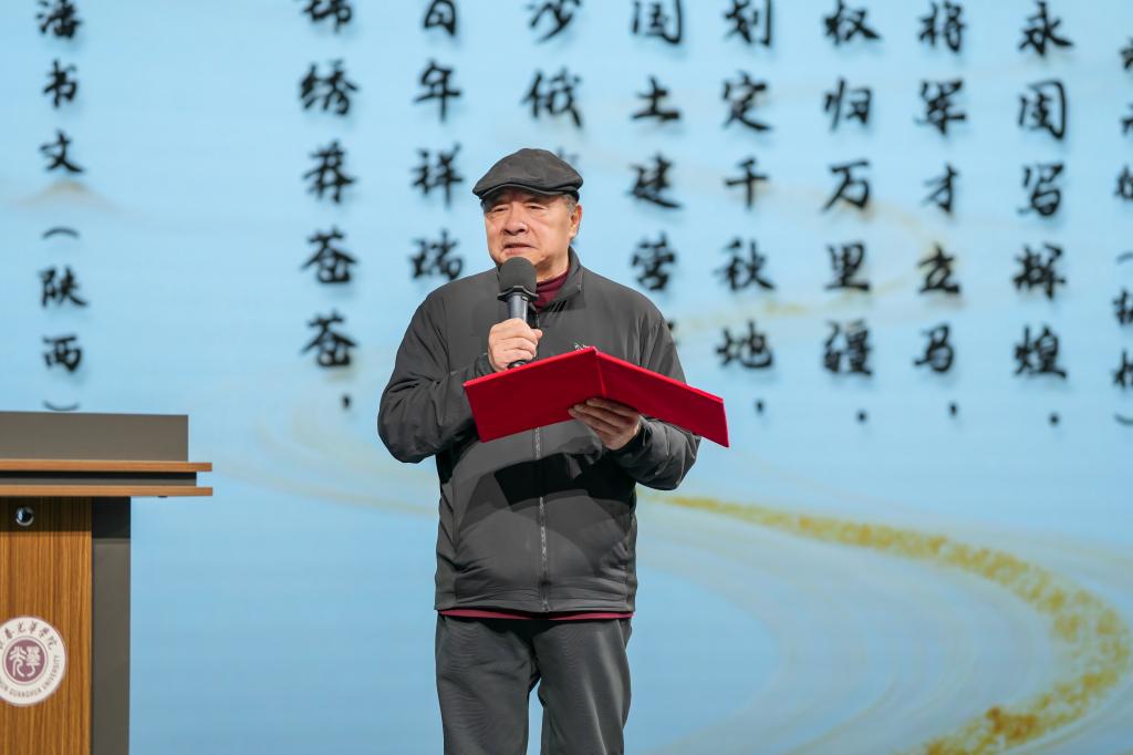 随后,吴元京先生为本次活动题赠墨宝并讲话,他深情回顾了高祖吴大澂戍守边疆的丰功伟绩,对长春光华学院在挖掘、研究和传承历史文化方面所付出的努力表示高度赞赏。他指出,此次话剧电影《山河苍苍》的创作是对高祖精神的艺术再现,更是新时代对历史文化的有力弘扬。