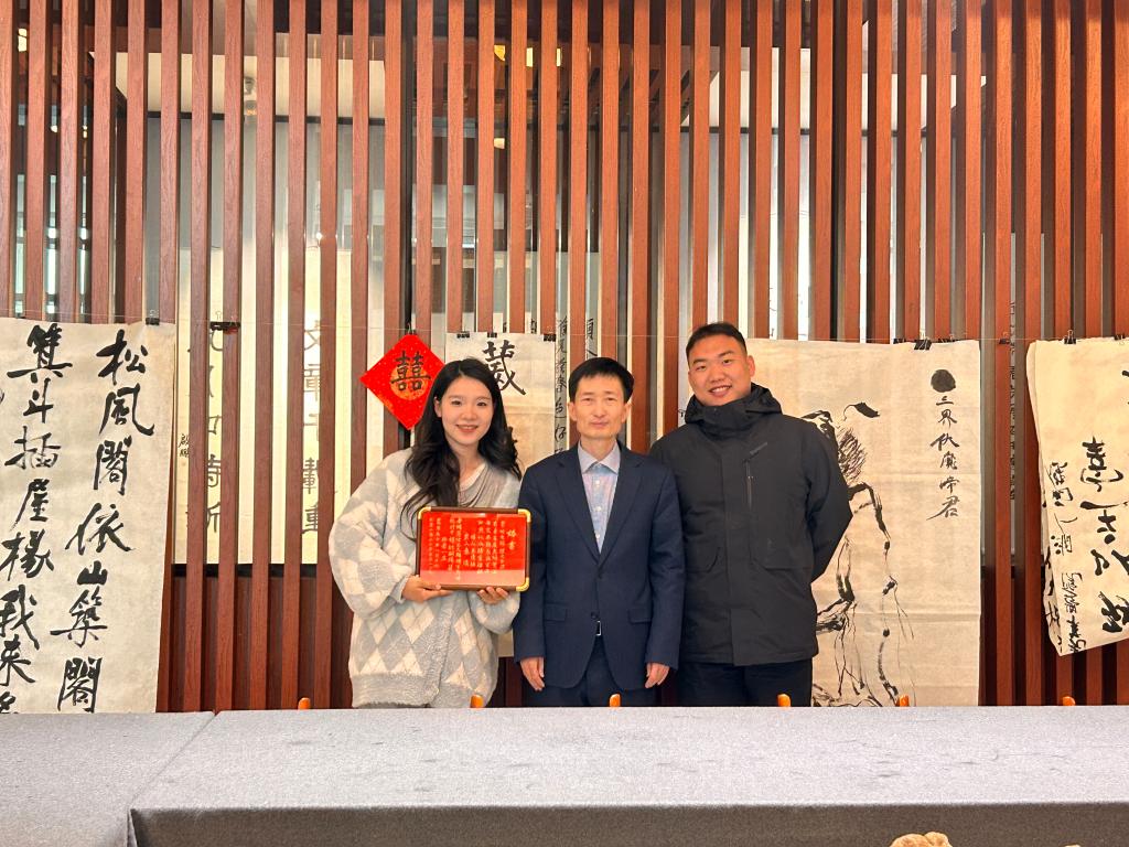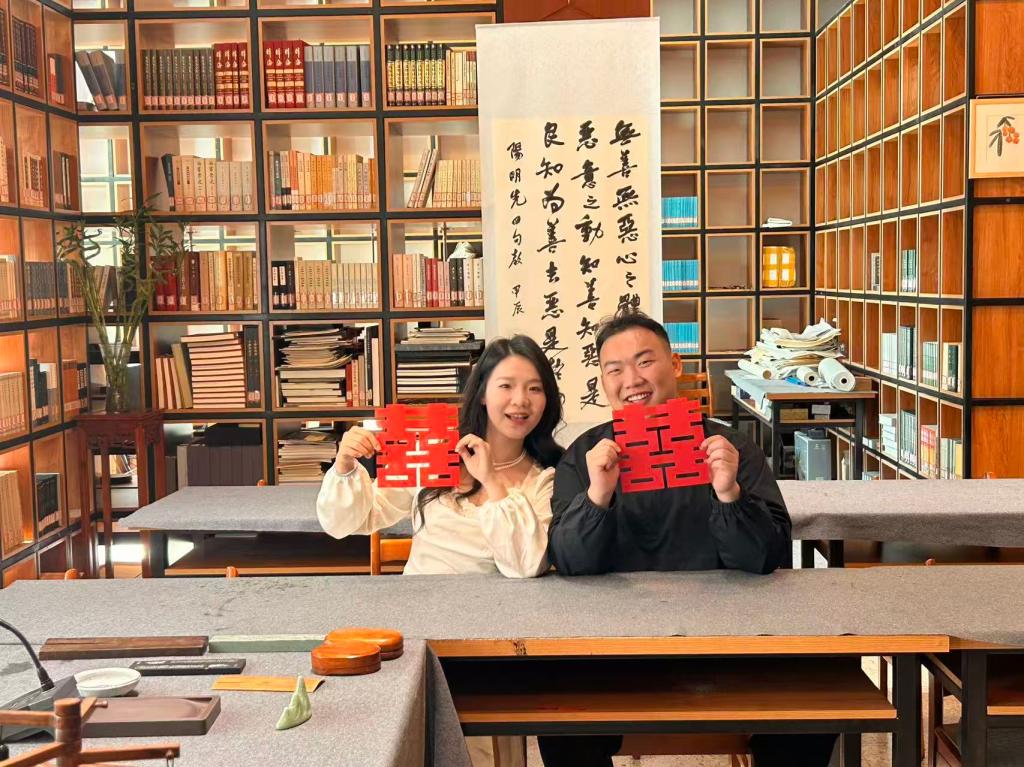 3月29日,我校武汉路校区北馆鉴朗轩书香氤氲、暖意融融,定格了一段专属于光华学子的浪漫瞬间。光华读书社第十五届社长王倩楠、第十七届社长秦溪两位校友喜结连理,专程返校分享新婚喜讯,并获董事长康启鹏亲笔题写婚书,以母校笔墨温情见证因书结缘的美好姻缘。